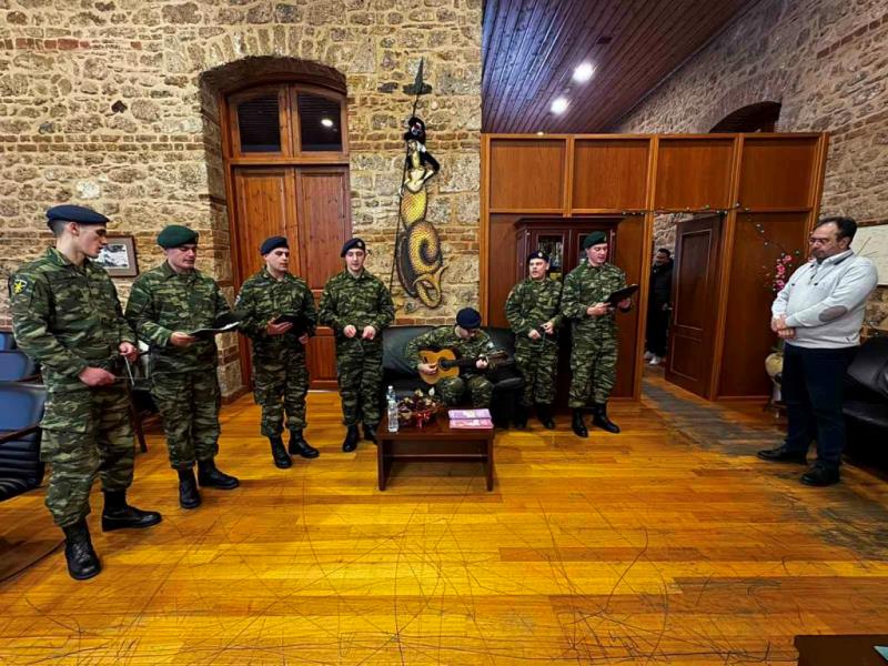 Τα κάλαντα της Πρωτοχρονιάς έψαλλαν λίγο πριν την αλλαγή του χρόνου στον Δήμαρχο Βέροιας η 1η Μεραρχία Πεζικού και η Φιλαρμονική του Δήμου Βέροιας, γεμίζοντας το Δημαρχείο της πόλης με ζεστές μελωδίες και ευχές για Ευτυχισμένο 2026.