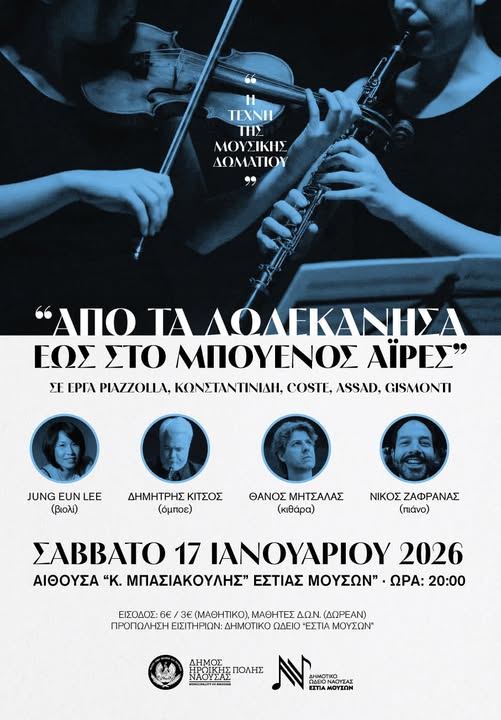 Η Τέχνη της Μουσικής Δωματίου: «Από τα Δωδεκάνησα έως το Μπουένος Άιρες» / Νάουσα, Σάββατο 17 Ιανουαρίου