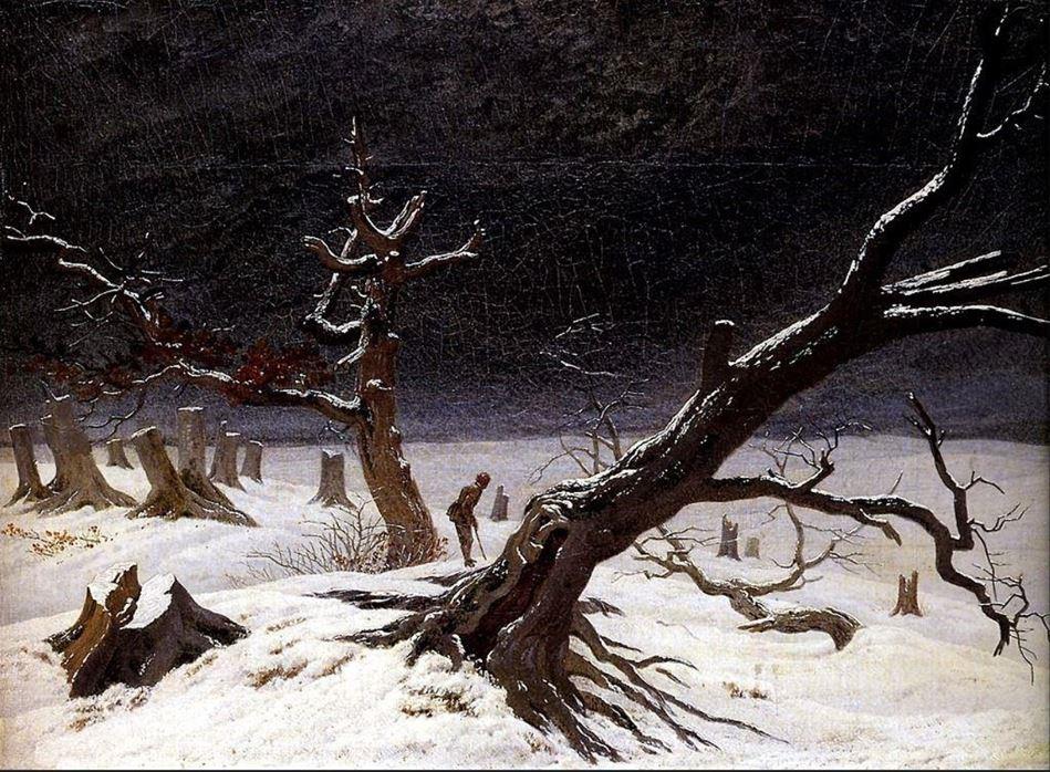 τα γυμνά κλαδιά και το μολυβένιο ουρανό.