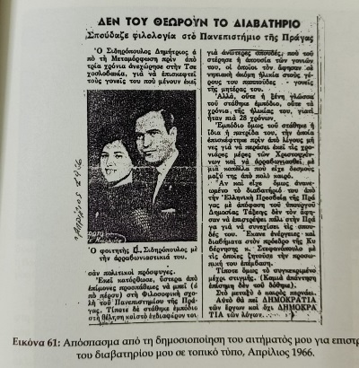 Εντωμεταξύ, κάποιος πρώτος εξάδελφος του πατέρα του που διέμενε στην Τσεχοσλοβακία, του πρότεινε να μην επιστρέψει στην Ελλάδα και να προετοιμαστεί για ανώτερες σπουδές στην Πράγα. Ο συγγραφέας δέχτηκε και ύστερα από κάποια εντατικά μαθήματα στη γλώσσα αυτής της χώρας, αναχώρησε για την Πράγα. Μετά από εξετάσεις πέρασε στη Φιλοσοφική Σχολή του πανεπιστημίου αυτής της πόλης. Δέχτηκε πρόταση και έγινε μέλος του Συλλόγου των Ελληνοκύπριων φοιτητών της Πράγας. Έκανε πολλές ομιλίες επάνω σε διάφορα θέματα και ανέπτυξε και άλλες πολιτιστικές δραστηριότητες, με αποτέλεσμα να παρακολουθεί συστηματικά τη δράση του η Ελληνική Πρεσβεία στην Πράγα.