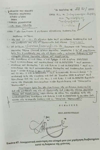Πολίτης ων, υπέβαλε δύο φορές αίτηση για την έκδοση διαβατηρίου για να φύγει μετανάστης στη Γερμανία. Οι αιτήσεις απορρίφτηκαν λόγω των κοινωνικών φρονημάτων του. Κατόπιν τούτου αποφάσισε να φύγει στους γονείς του στην Τσεχοσλοβακία. Με τη βοήθεια του βουλευτή Δημοσθένη Παπαδόπουλου κατάφερε να βγάλει τελικά διαβατήριο. Στην Πράγα τον υποδέχτηκε ο αδελφός του Γιώργος με τον οποίο πήγαν στους γονείς τους που κατοικούσαν 100 χιλιόμετρα βόρεια της Πράγας. Ιδού πώς περιγράφει ο συγγραφέας τη συνάντησή του με τους γονείς του: