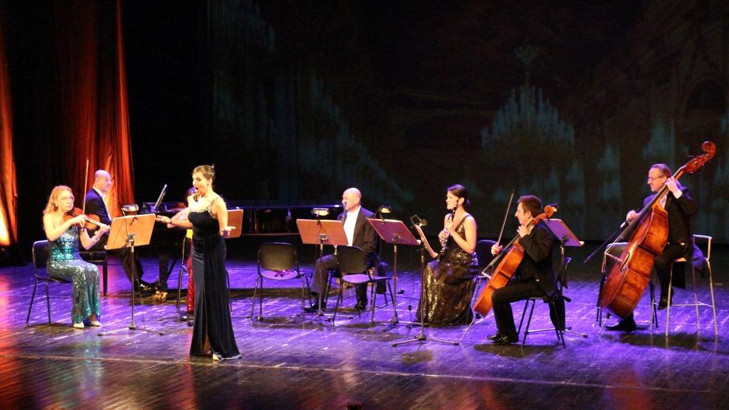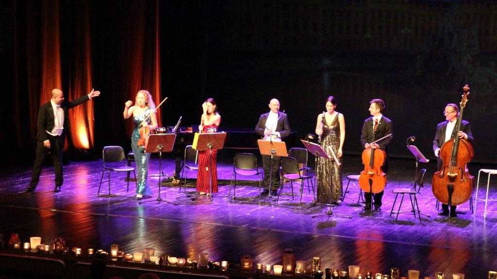 Πρώτη πινελιά το Ανάκτορο του Σέμπρουν της Βιέννης, που προβάλλονταν πίσω από τους μουσικούς στη μεγάλη οθόνη, παρέπεμπε στην εποχή και στη μουσική της και δημιουργούσε πέρα από τον ήχο και την οπτική επαφή με την εποχή.