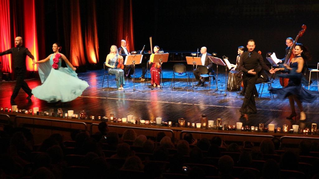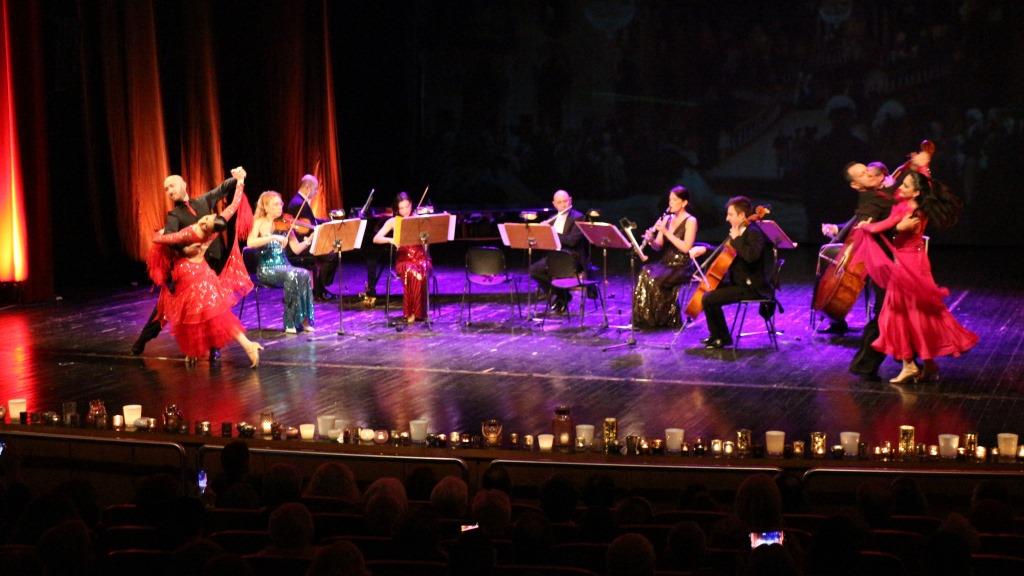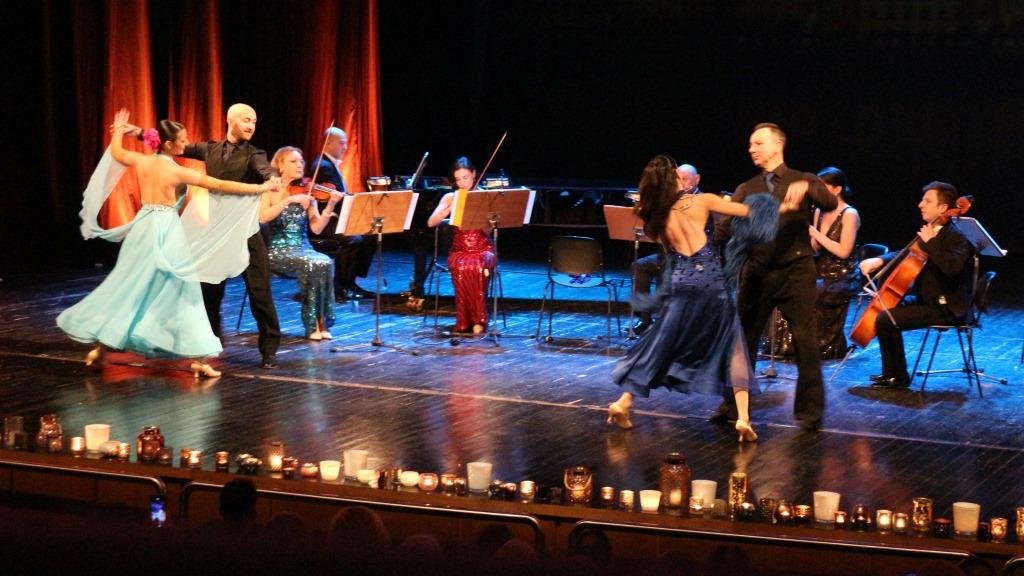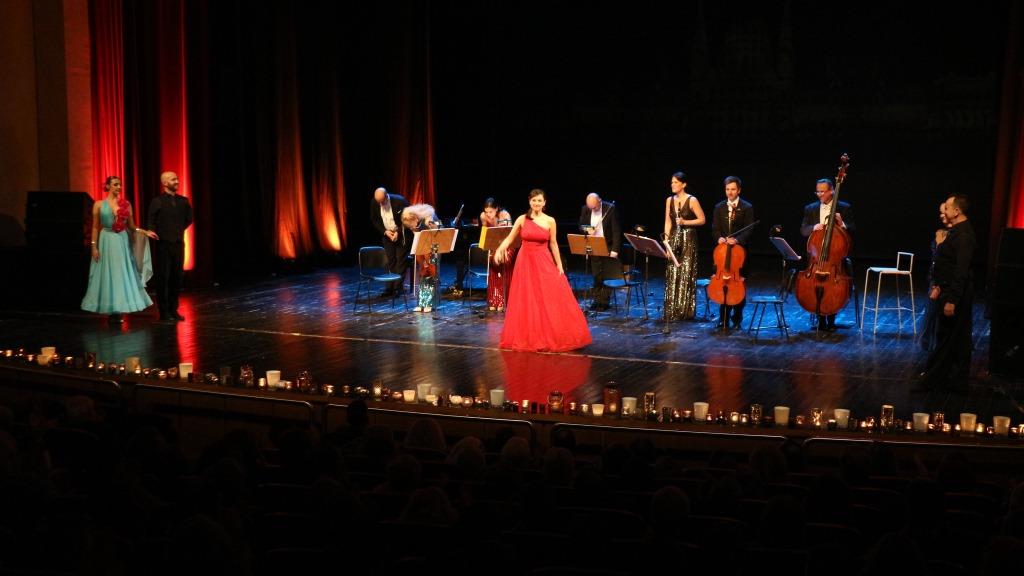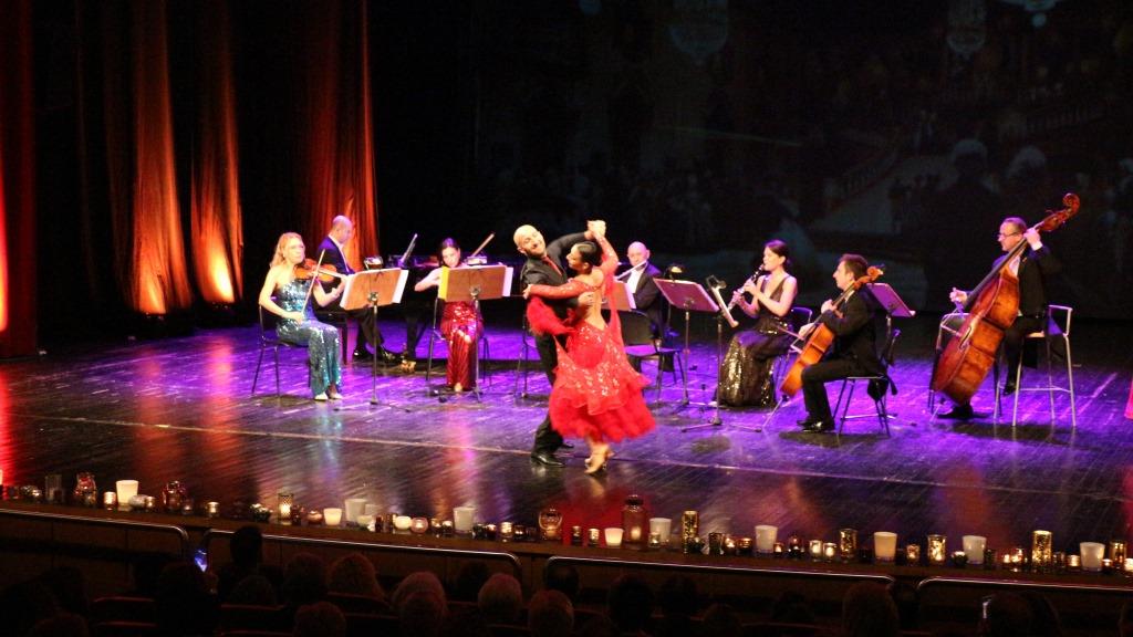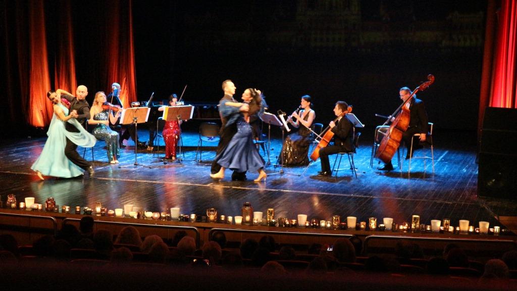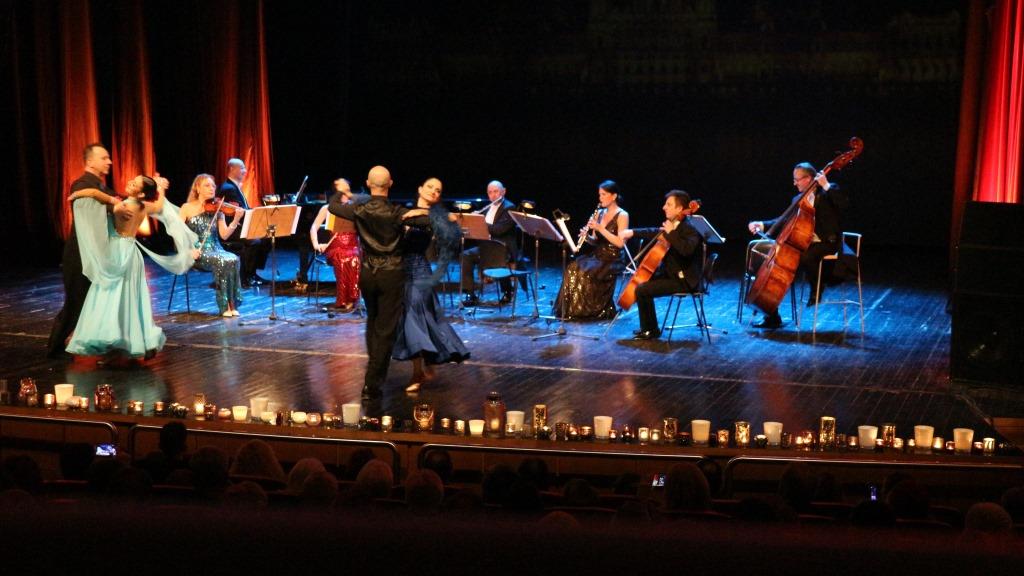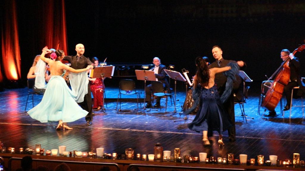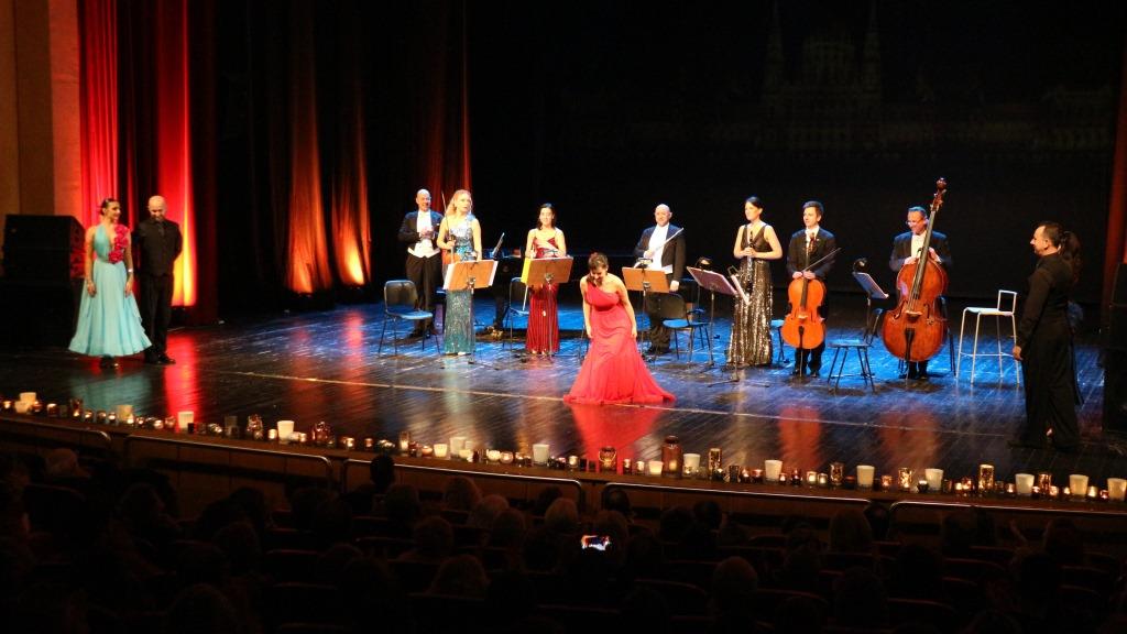 Τρίτη πινελιά, που έδινε έναν φαντασμαγορικό τόνο στην όλη εκδήλωση, ήταν η παρουσία φωνής που έντυσε κομμάτια του Στράους με το ανάλογο ύφος, αλλά και η παρουσία τεσσάρων χορευτών, που στροβιλίστηκαν πάνω στη σκηνή χορεύοντας εντυπωσιακά βαλς.
