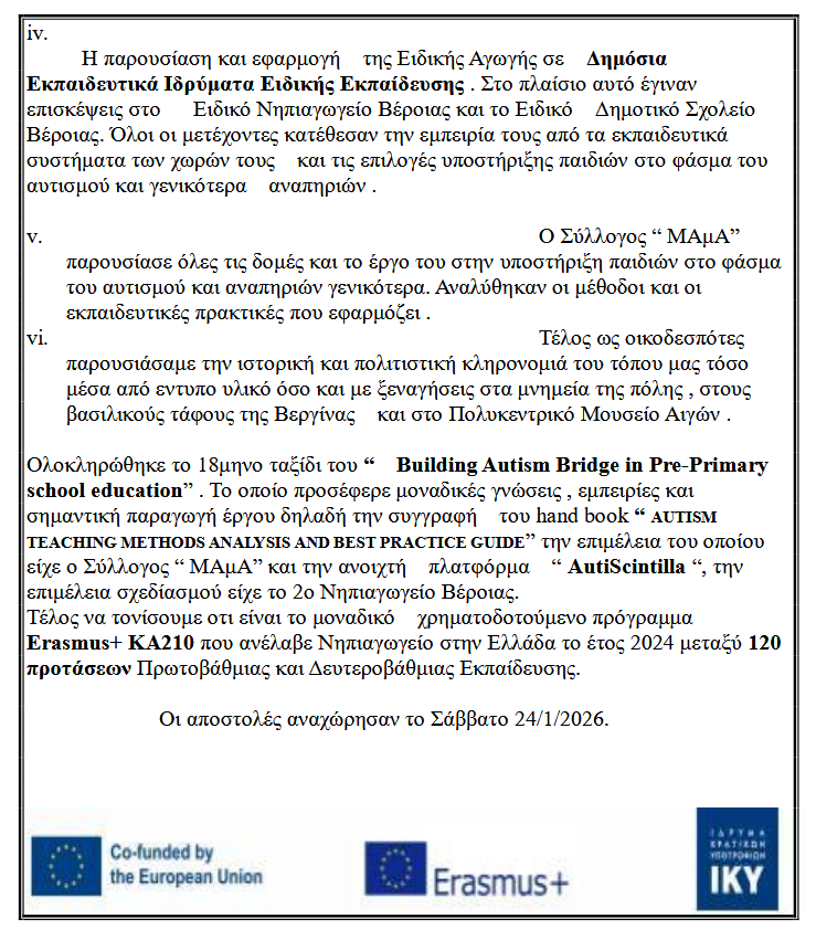 Βέροια Με ιδιαίτερη επιτυχία η εκδήλωση του 2ου Νηπιαγωγείου Βέροιας – Μελέτειου, (Erasmus + “AutismBridge”)