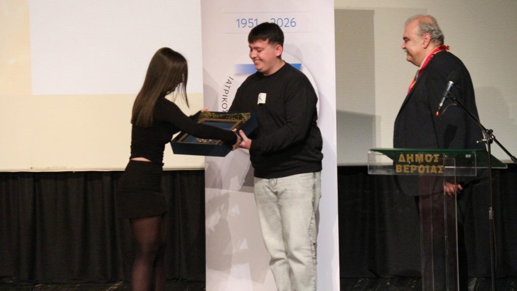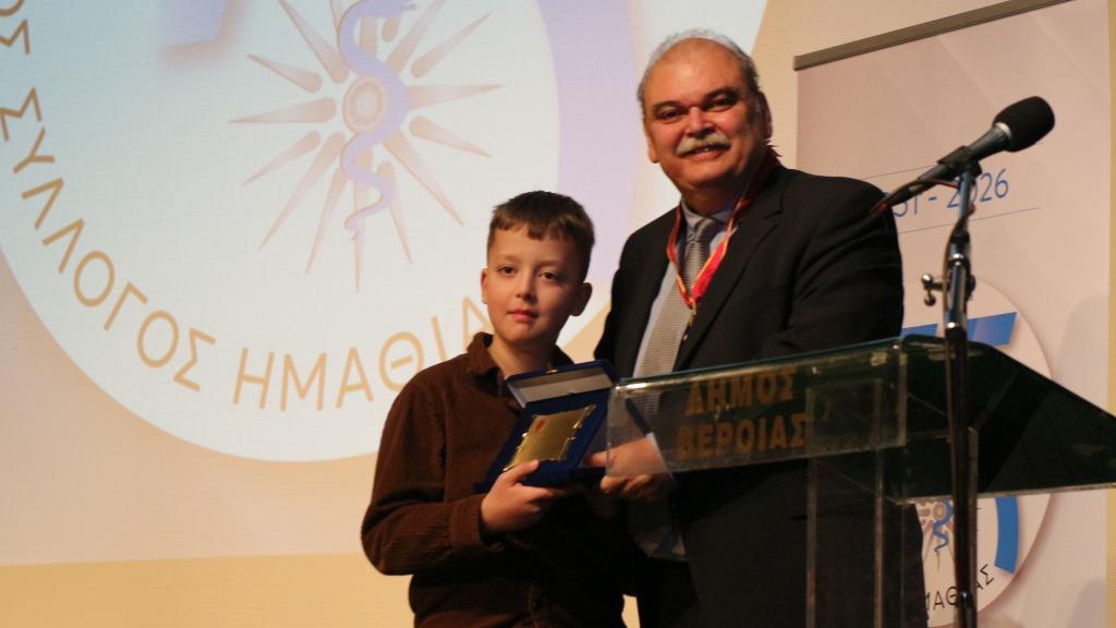Ανακοίνωσε στη συνέχεια πως ο ΙΣΗ ομόφωνα αποφάσισε να βραβεύει από τη φετινή χρονιά τον πρώτο μαθητή της Ημαθίας που μπήκε στην Ιατρική Σχολή και βράβευσε έτσι την Φένια Τσαχουρίδου που παρέλαβε, πέρα από την τιμητική πλακέτα και ένα συμβολικό χρηματικό ποσό.