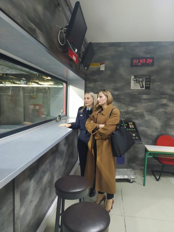 Η Διοικητής της Σχολής Αστυνομικός Διευθυντής κα Σοφία ΓΑΪΤΑΝΙΔΟΥ, υποδέχτηκε και καλωσόρισε την κα Έλενα ΣΩΚΟΥ, την οποία ενημέρωσε ενδελεχώς για τη μέχρι τώρα εκπαιδευτική δραστηριότητα της Σχολής, την προοπτική, τους στόχους της, τη διεθνή αστυνομική συνεργασία και πορεία με μοχλό την Κατάρτιση – Επιμόρφωση και Μετεκπαίδευση. Επίσης η κα ΣΩΚΟΥ ενημερώθηκε για την ολοκλήρωσης της μελέτης, εντός του τρέχοντος έτους, για την ανέγερση ενός κτιρίου κοιτώνων διαμονής, δυναμικότητας 122 κλινών, η οποία χρηματοδοτήθηκε από την Π.Ε. Ημαθίας και τονίστηκε η ανάγκη μετάβασης στην επόμενη φάση του έργου, ήτοι τη χρηματοδότηση της ανέγερσης του κτιρίου.