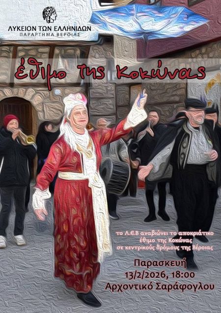 Με χορευτές και φίλους του Λυκείου θα αναπαραστήσει το βεροιώτικο δρώμενο της “ΚΟΚΩΝΑΣ” στους δρόμους της πόλης.