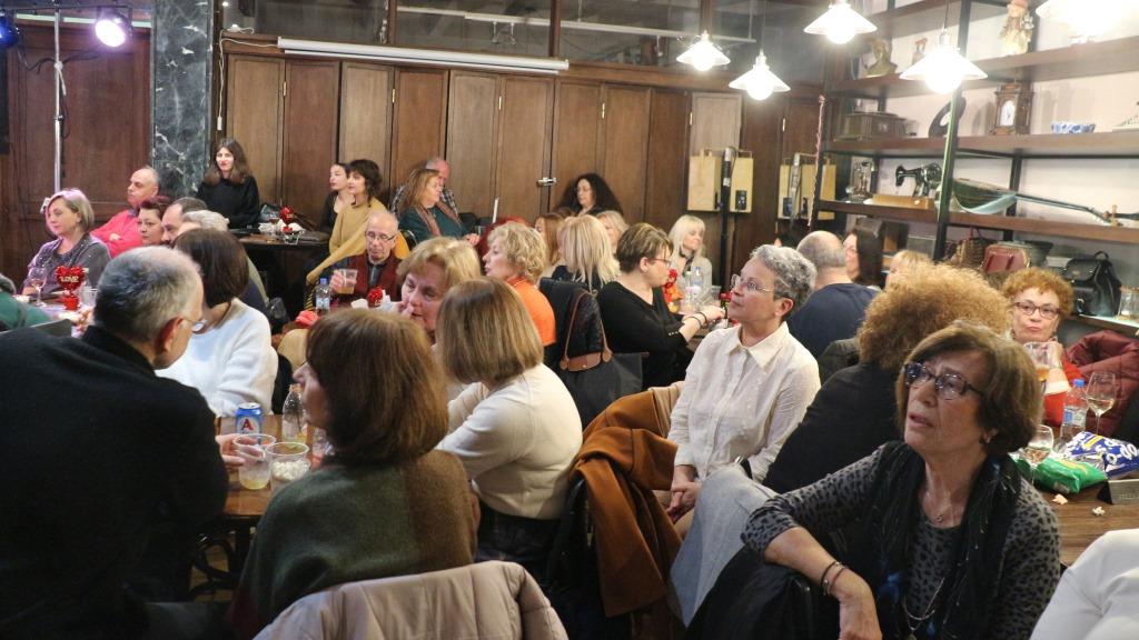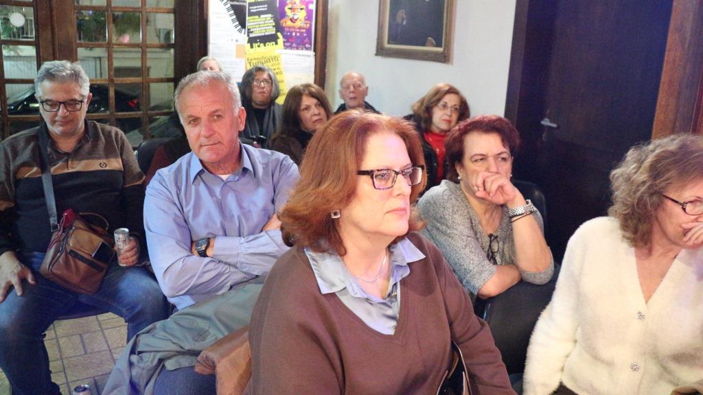 Ο Κώστας Ρίζος, Πρόεδρος της ΚΕΠΑ, αλλά αυτήν τη φορά εκπροσωπώντας τον ΜΠΟΥΣΟΥΛΑ, μίλησε με χαρά για τη σημερινή διεύρυνση του σχήματος και με άλλα μέλη, προχωρώντας σε ένα μικρό πορτρέτο του Λευτέρη Παπαδόπουλου, στον οποίο ήταν αφιερωμένη η βραδιά.
