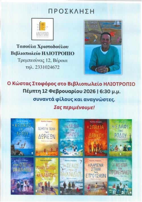 Βέροια: Ο Κώστας Στοφόρος στο βιβλιοπωλείο Ηλιοτρόπιο / Πέμπτη 12 Φεβρουαρίου