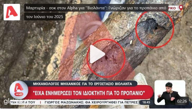Από το καλοκαίρι του 2025 η διοίκηση του εργοστασίου «Βιολάντα» γνώριζε ότι οι εγκαταστάσεις υγραερίου δεν ήταν ασφαλείς