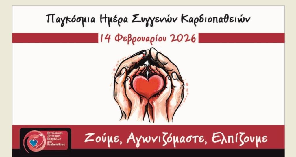 Το Σάββατο, 14 Φεβρουαρίου 2026, εορτάζεται διεθνώς και στη χώρα μας η Παγκόσμια Ημέρα για τις Συγγενείς Καρδιοπάθειες. Η συγκεκριμένη Ημέρα συνιστά το αποκορύφωμα και την ολοκλήρωση της εβδομάδας μεταξύ 7ης και 14ης Φεβρουαρίου 2026, η οποία διεθνώς είναι αφιερωμένη σε δράσεις ενημέρωσης και ευαισθητοποίησης για τις συγγενείς καρδιοπάθειες και έχει αναμφισβήτητα ασθενοκεντρικό και ταυτόχρονα ανθρωποκεντρικό χαρακτήρα.