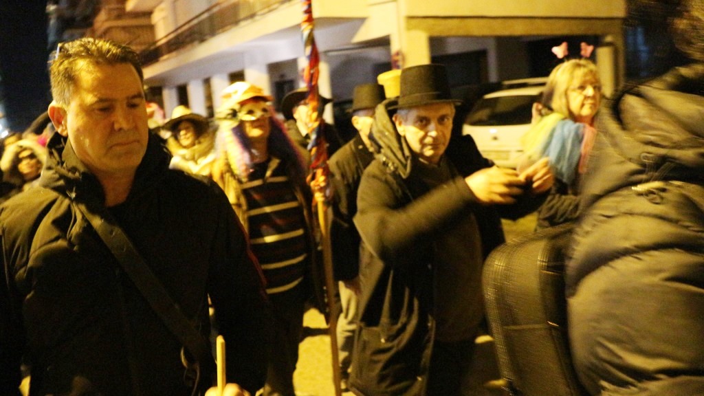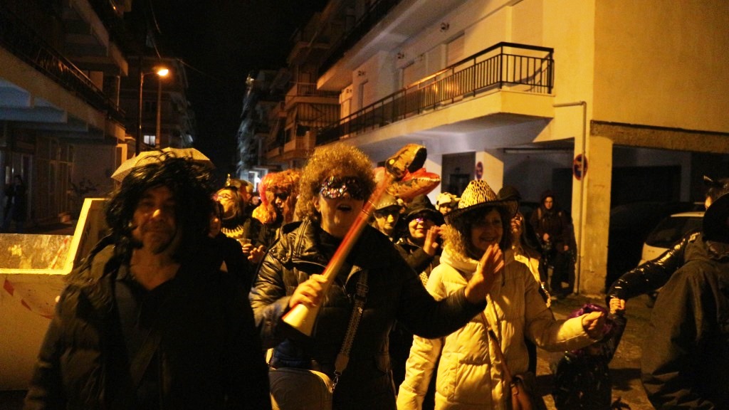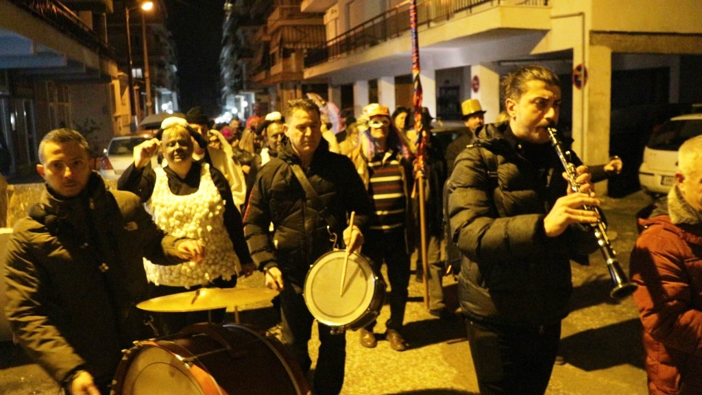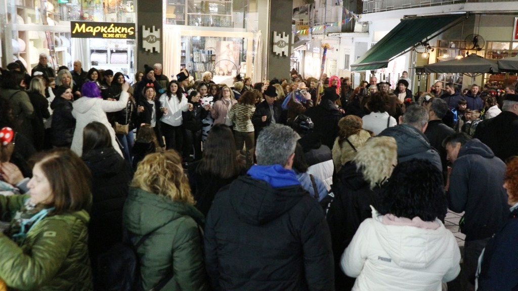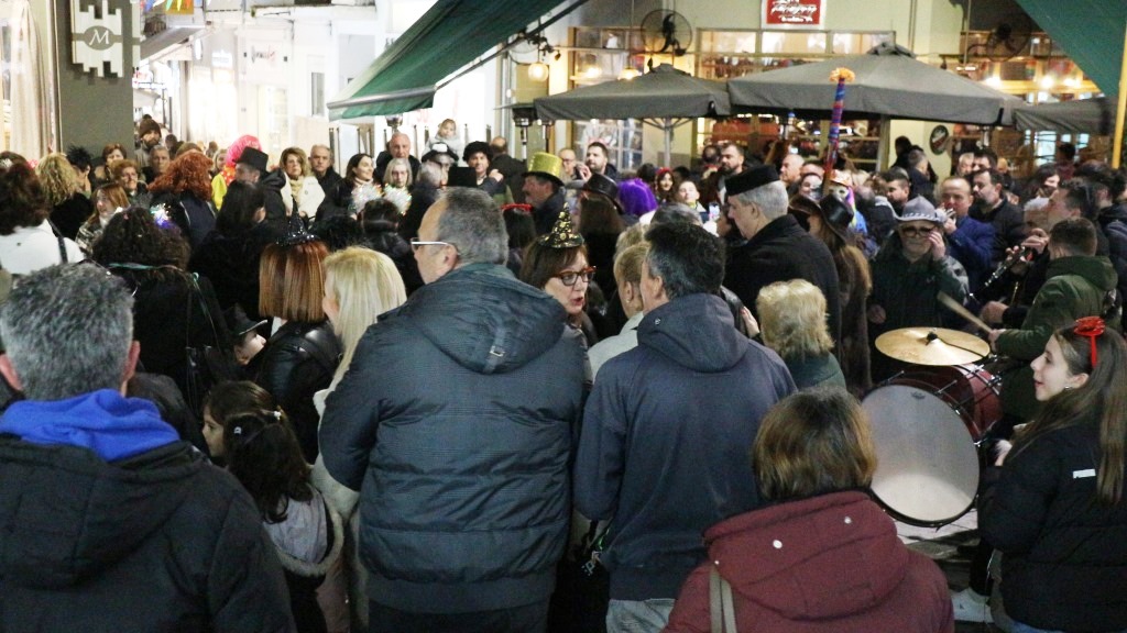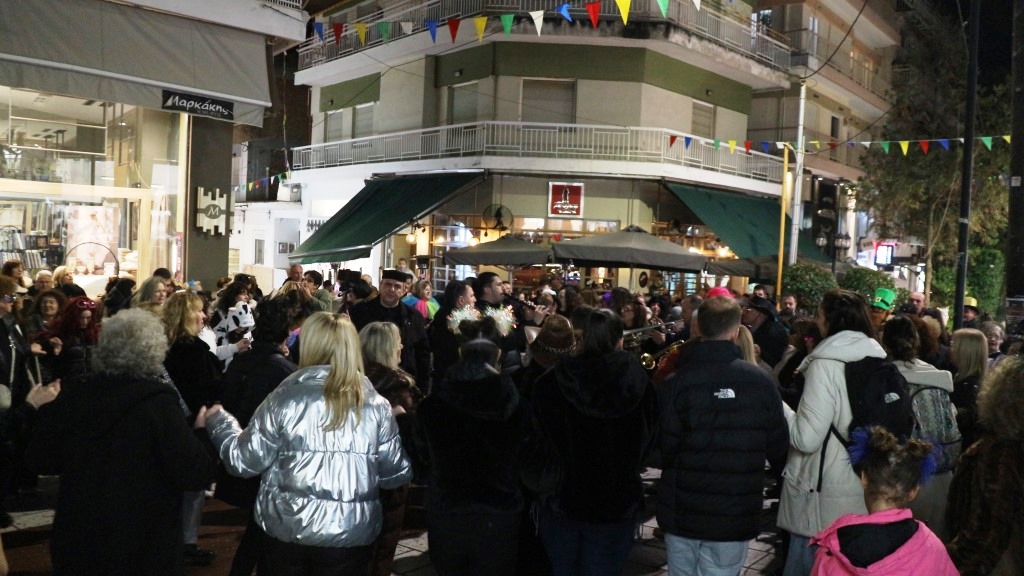 Οι χορευτές του Τμήματος Λαογραφίας ξεκίνησαν την πατινάδα τους από τη Αντωνιάδεια Στέγη Γραμμάτων και Τεχνών με συνοδεία χάλκινων πνευστών, διασχίζοντας το κέντρο της πόλης, για να συναντηθούν με τον κόσμο που τους περίμενε στο Εμπορικό Κέντρο στις 7.30 το βράδυ. Κι αυτό κόντρα στο ψιλόβροχο, που έπεφτε και που σίγουρα δεν ήταν καλός οιωνός για τη συνέχεια.