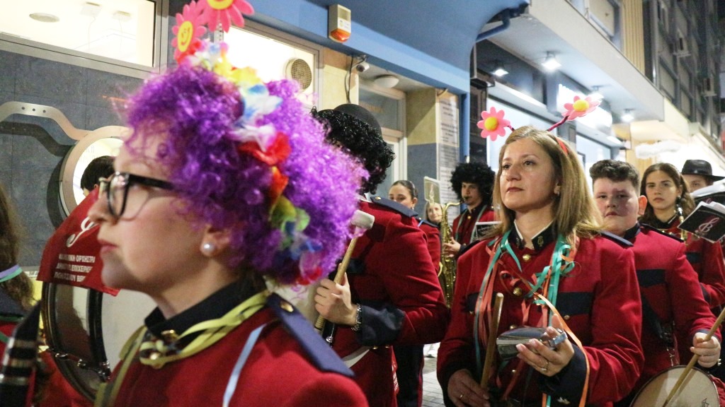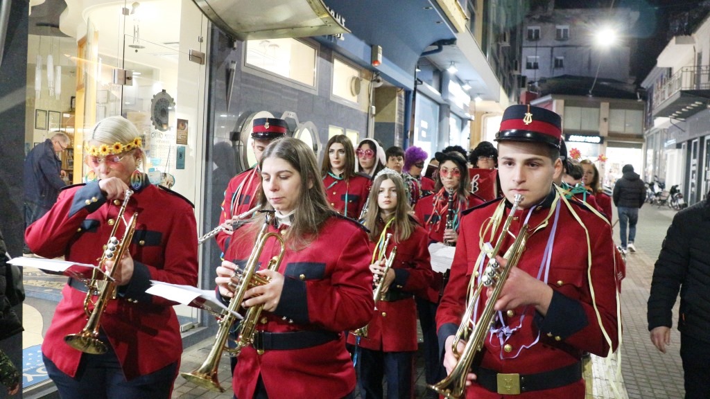 Λίγη ώρα αργότερα, η Φιλαρμονική της ΚΕΠΑ, με μαέστρο τον Βαλάντη Κυριακίδη, πλημμύρισε τους δρόμους της Βέροιας με άλλους ήχους, Samba, Lambada, Bamboleo, με προορισμό και πάλι το Εμπορικό Κέντρο. Τα παιδιά της Φιλαρμονικής με ανάλογες αποκριάτικες πινελιές και στη στολή τους, έδωσαν το δικό τους γιορτινό χρώμα στην ατμόσφαιρα