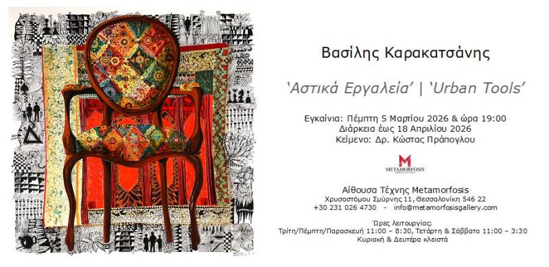 Στις 5 Μαρτίου 2026 η Αίθουσα Τέχνης Metamorfosis, εγκαινιάζει την έκθεση με τίτλο ‘Αστικά Εργαλεία’ | ‘Urban Tools’ του ζωγράφου Βασίλη Καρακατσάνη.