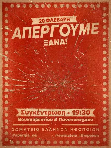 Σωματείο Ελλήνων Ηθοποιών: Στις 20 Φλεβάρη απεργούμε ξανά, συνεχίζουμε δυναμικά τη διεκδίκηση για την υπογραφή της ΣΣΕ