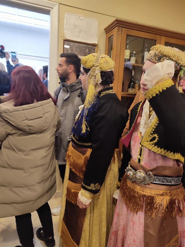 The celebrations began on Sunday morning at the traditional headquarters of the “Genitsaroi and Boules” Association, housed in the former “Maki” sesame mill in the Batania district. There, the customary presentation on the history and living function of the centuries-old custom was delivered, followed by a guided tour of the premises. Visitors and devoted friends of the ritual were offered a meaningful opportunity to explore its symbolism, its social significance, and its enduring presence in the cultural identity of Naoussa.