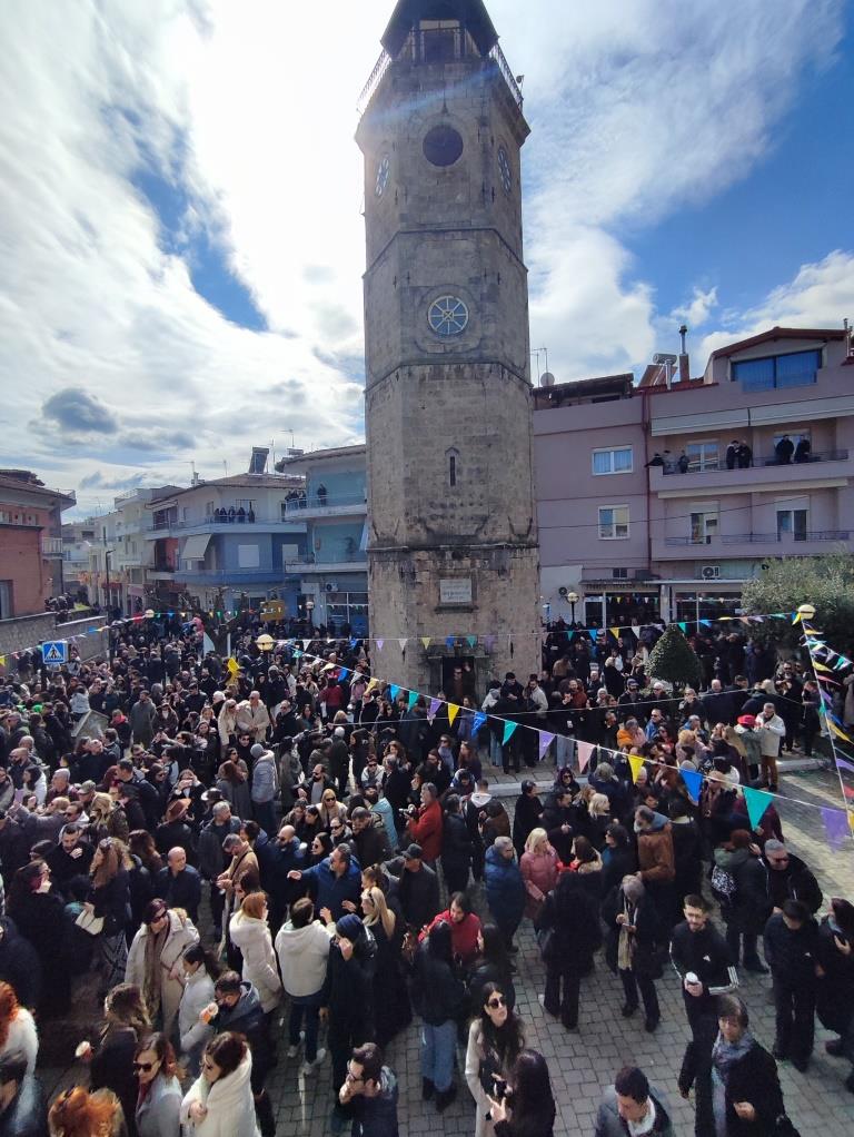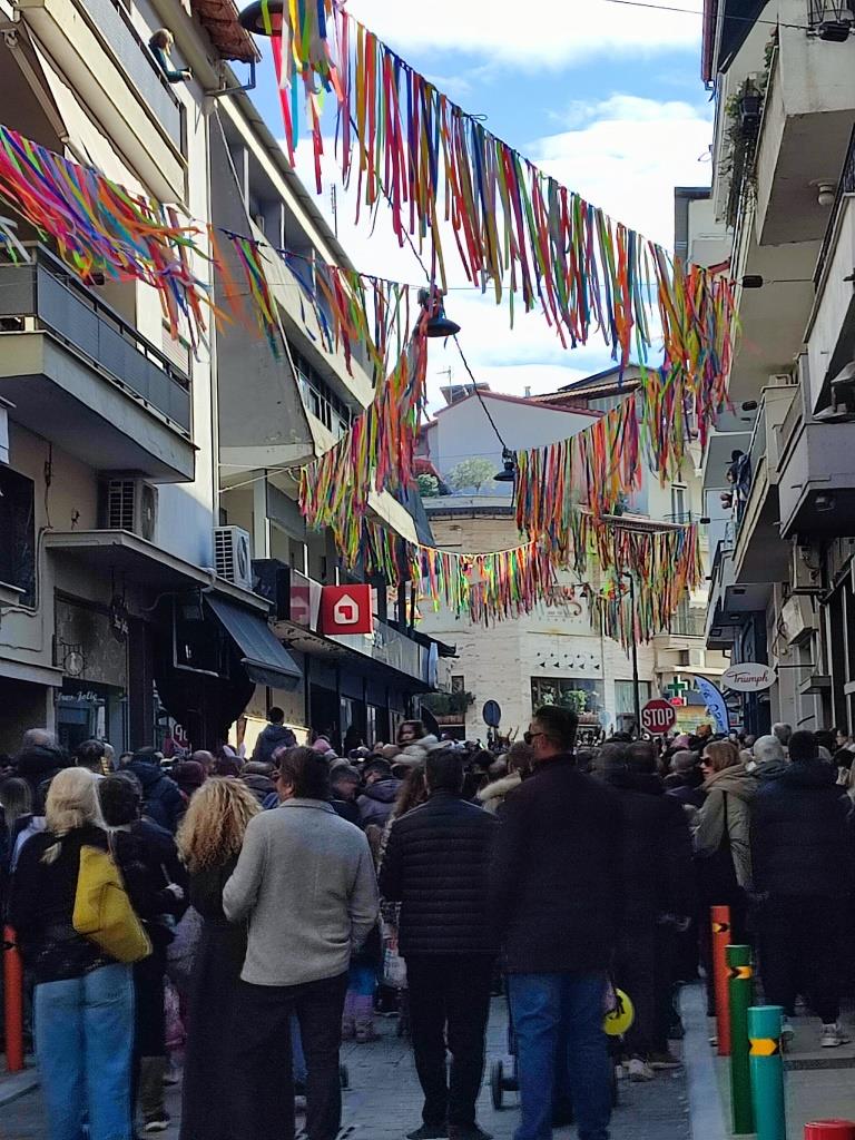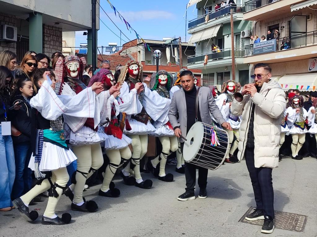 As every year, the main event was accompanied by a series of parallel activities throughout the city. Cafés and taverns welcomed the sea of visitors who had gathered to experience the unique atmosphere of the Naoussa Carnival. At the peak of the festivities, Karatasou Square became the vibrant heart of celebration, hosting a lively carnival concert and traditional feast featuring the “Macho Band.” The square was flooded with people, whose energy and enthusiasm infused the city with rhythm, color, and festive spirit.
