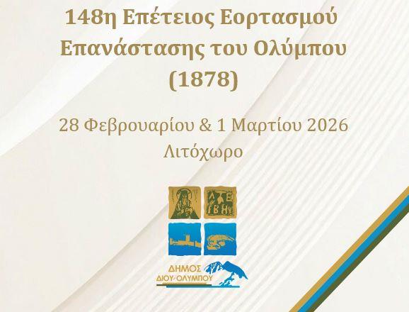 Δήμος Δίου-Ολύμπου: Το πρόγραμμα εορτασμού της 148ης επετείου της Επανάστασης του Ολύμπου (1878) / Λιτόχωρο, 28 Φεβρουαρίου & 1 Μαρτίου