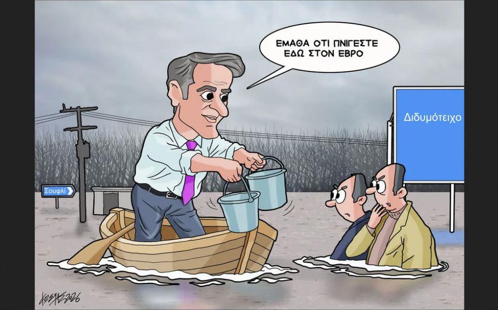 Κοινωνία Πολιτική Σκίτσα Οι γελοιογράφοι σχολιάζουν: “Ο Έβρος πνίγεται…” / Κώστας Γρηγοριάδης Faretra.info 26/02/2026, 22:19 Share on Facebook Share on Twitter Send with mail “Ο Έβρος πνίγεται…” Κώστας Γρηγοριάδης / efsyn.gr Φαρέτρα γελοιογράφοι Έβρος Κώστας Γρηγοριάδης πλημμύρες ΣΧΕΤΙΚΑ ΑΡΘΡΑ Σκίτσα Οι σκιτσογράφοι σχολιάζουν: “… η γέννηση της ελπίδας!” / Κώστας Γρηγοριάδης Πολιτική Οι γελοιογράφοι σχολιάζουν: “Οι… ακρίδες!” / Κώστας Γρηγοριάδης Σκίτσα Οι γελοιογράφοι σχολιάζουν: “Η… επιστροφή!” / Ιάκωβος Βάης Σκίτσα Οι γελοιογράφοι σχολιάζουν: “Το… 1%!” / Soloup Σκίτσα Οι γελοιογράφοι σχολιάζουν: “Η… κακιά στιγμή!” / Soloup Σκίτσα Οι γελοιογράφοι σχολιάζουν: “Η… ελευθερία του τύπου, με… μηνύσεις” / επτά σκίτσα από Ελλάδα και τον κόσμο
