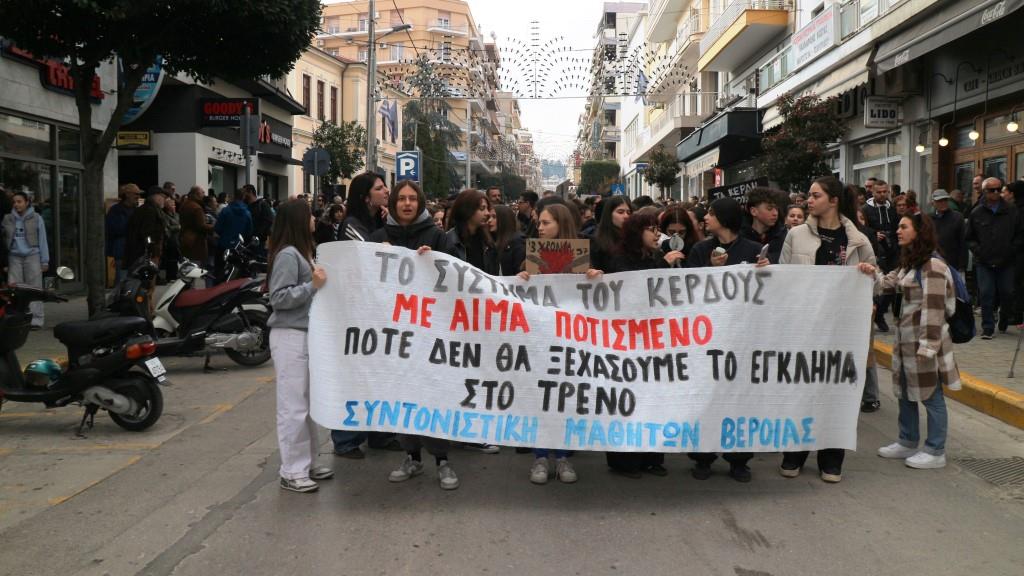 Βέροια: Τρία χρόνια από το έγκλημα των Τεμπών / Μαζική η συγκέντρωση. «Ή τα κέρδη τους ή οι ζωές μας”, το σύνθημα που κυριάρχησε