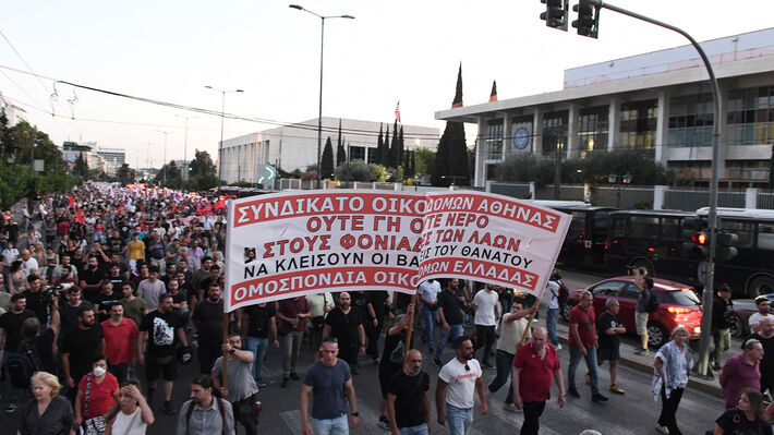 Καταγγέλλει την ελληνική κυβέρνηση «που έχει σοβαρές ευθύνες γιατί έχει αναλάβει ρόλο σημαιοφόρου για άλλη μια φορά σε αυτή τη βαρβαρότητα. Τα χέρια της είναι βαμμένα με το αίμα των θυμάτων. Αρνούμαστε να συνηθίσουμε αυτή την κατάσταση ως κανονικότητα. Να συνηθίσουμε στο θάνατο, στον πόνο, στα φέρετρα. Την ίδια στιγμή βάζει σε κίνδυνο τη ζωή των ναυτεργατών που πλέουν σε πλοία στον Περσικό κόλπο και πρέπει άμεσα να πάρει μέτρα να γυρίσουν όλοι σώοι στα σπίτια τους. Να χαρακτηριστούν άμεσα εμπόλεμες ζώνες όπου μαίνονται συγκρούσεις για να μην κινδυνεύσει κανένας ναυτεργάτης. Να γυρίσουν πίσω η ελληνική φρεγάτα και όλο το στρατιωτικό προσωπικό που βρίσκεται εκατοντάδες χιλιόμετρα μακριά από τα σύνορα της χώρας. Να κλείσει η βάση της Σούδας και οι υπόλοιπες ΑμερικανοΝΑΤΟικές βάσεις που είναι “σπαρμένες” σε όλη τη χώρα».