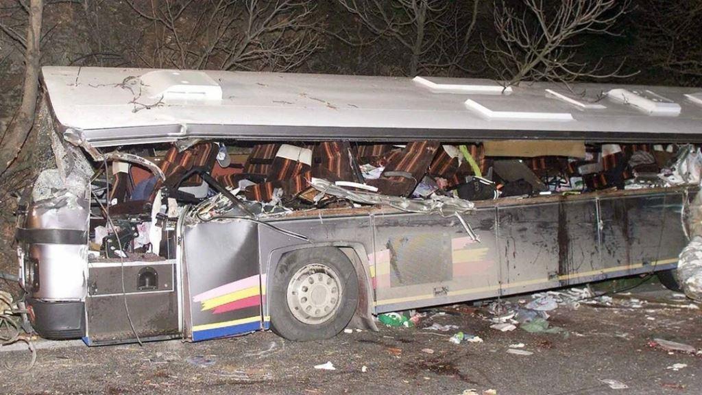 «Ένα υπεραστικό λεωφορείο που μετέφερε 49 μαθητές και 3 συνοδούς καθηγητές του Γενικού Λυκείου Μακροχωρίου Ημαθίας, επιστρέφοντας από σχολική εκδρομή στην Αθήνα, συγκρούστηκε, επί του 386ου χιλιομέτρου της Παλαιάς Εθνικής Οδού Αθηνών, πλαγιομετωπικά με φορτηγό που μετέφερε ξυλεία από τον Προβατώνα Έβρου. Ο οδηγός του φορτηγού έχασε τον έλεγχο και βρέθηκε στο αντίθετο ρεύμα. Αν και πρόλαβε να αποφύγει την απευθείας μετωπική σύγκρουση, το φορτηγό έφερε ένα ρυμουλκούμενο που μετέφερε φύλλα νοβοπάν, τα οποία απελευθερώθηκαν από τη σύγκρουση και μπήκαν μέσα στο λεωφορείο, κόβοντας στα δύο όλη την αριστερή πλευρά του.21 μαθητές έχασαν τη ζωή τους…