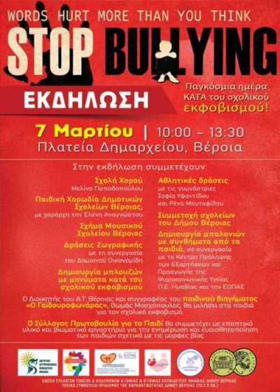 Βέροια: Stop bullying – εκδήλωση για τον σχολικό εκφοβισμό / Σάββατο 7 Μαρτίου