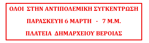 Κάλεσμα σε αντιπολεμική συγκέντρωση / Παρασκευή 6 Μαρτίου, 7 μ.μ., Πλατεία Δημαρχείου Βέροιας