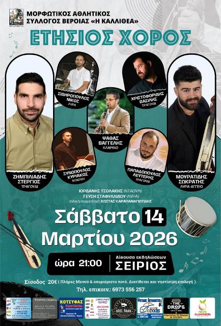 Ο Μορφωτικός Αθλητικός Σύλλογος Βέροιας «Η ΚΑΛΛΙΘΕΑ» σας προσκαλεί στον ετήσιο χορό του!