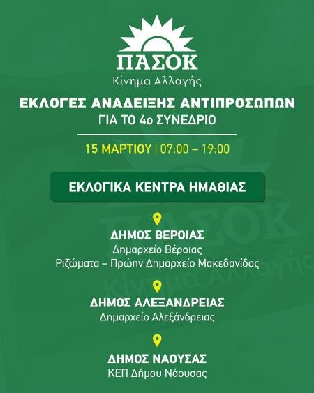 Ημαθία: Εκλογές Ανάδειξης Αντιπροσώπων ΠΑΣΟΚ – ΚΙΝΑΛ | Εκλογικά Κέντρα – Κυριακή 15 Μαρτίου