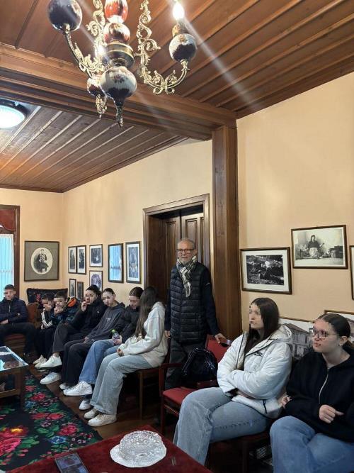 Στο πλαίσιο της δράσης: «Πολιτιστικές Διαδρομές στη Βέροια: Παράδοση, μνήμη, ταυτότητα», η οποία εντάσσεται στις δράσεις Ενεργού Πολίτη που υλοποιεί η Γ΄ Γυμνασίου για το σχολικό έτος 2025-2026, προχθές Τετάρτη 18-3-2026, επισκέφθηκε τον Σύλλογο το Γ1 τμήμα του 6ου Γυμνασίου Βέροιας, με συνοδούς εκπαιδευτικούς την Σακαλή Χριστίνα και την Ιακωβίδου Ελίζα.
