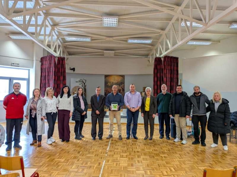 Με ιδιαίτερη χαρά δεχθήκαμε στο σχολείο μας μια σημαντική προσφορά για την ασφάλεια και την υγεία όλων μας. Ο κ. Αθανάσιος Δέλλας, ο οποίος κατάγεται από τα Ριζώματα, προχώρησε στη δωρεά ενός υπερσύγχρονου απινιδωτή εις μνήμην των γονέων του και της πεθεράς του, ενισχύοντας ουσιαστικά την ετοιμότητά μας σε περιπτώσεις έκτακτης ανάγκης.