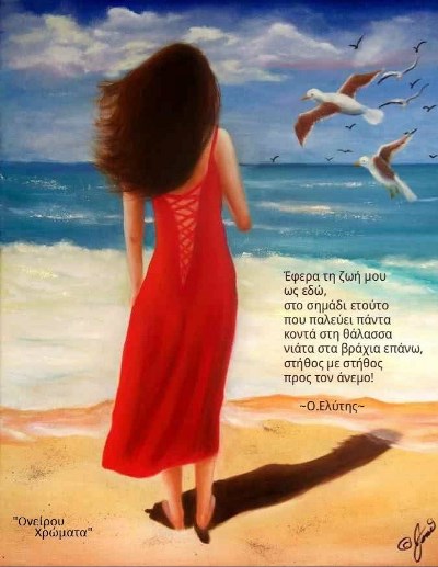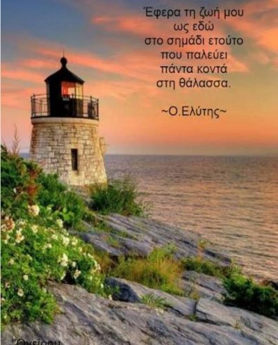 Υπείκων κι εγώ, λοιπόν, στο έθιμο να αναζητούμε εκείνο τον στίχο που μας εκφράζει κι εν μέρει συνιστά και ταυτοτικό μας στοιχείο εστίασα το ενδιαφέρον μου σε έναν στίχο του Ελύτη, από το ποίημα “ΕΠΕΤΕΙΟΣ” (1936):