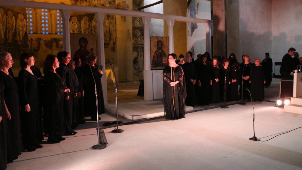 Η είσοδος της σοπράνο με τις μαυροφορεμένες χορωδούς της, ιέρειες θαρρείς να βαδίζουν προς το ιερό μαζί με την πρωθιέρειά τους στους ήχους του πιάνου της έξοχης Κατερίνας Λιάτα, το ημικύκλιο που σχημάτισαν, η φωνή που υψώθηκε διαβάζοντας σε ρέοντα νεοελληνικό λόγο θυμίζοντας τις μέρες εκείνες που ο Ιησούς… Όλα ήταν διαφορετικά…