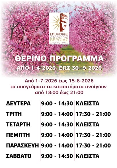 Θερινό Πρόγραμμα Εμπορικού Συλλόγου Βέροιας / από 1/4 έως και 30/9/ 2026