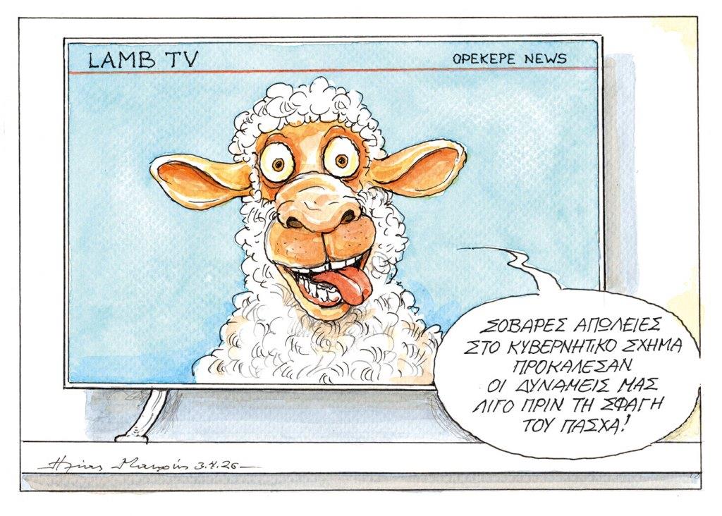 Αγροτικά Πολιτική Σκίτσα Οι γελοιογράφοι σχολιάζουν: “ΟΠΕΚΕΠΕ… σοβαρές απώλειες!” / Ηλίας Μακρής Faretra.info 05/04/2026, 13:04 Share on Facebook Share on Twitter Send with mail “…σοβαρές απώλειες!” Ηλίας Μακρής / kathimerini.gr – Φαρέτρα γελοιογραφία Ηλίας Μακρής ΟΠΕΚΕΠΕ Πολιτική Σκίτσα ΣΧΕΤΙΚΑ ΑΡΘΡΑ Σκίτσα Οι σκιτσογράφοι σχολιάζουν: “…με τους αγρότες” / έξι σκίτσα Σκίτσα Οι γελοιογράφοι σχολιάζουν: “Συγγνώμες… παντός καιρού” / Πάνος Ζάχαρης Σκίτσα Οι σκιτσογράφοι σχολιάζουν: “Η οσμή του… χρήματος” / τέσσερα σκίτσα Σκίτσα Οι γελοιογράφοι σχολιάζουν: “Η… ελευθερία του τύπου, με… μηνύσεις” / επτά σκίτσα από Ελλάδα και τον κόσμο Σκίτσα Οι γελοιογράφοι σχολιάζουν: “Το… επιτελικό κράτος” / Μιχάλης Κουντούρης Σκίτσα Οι γελοιογράφοι σχολιάζουν: “Από το μπάζωμα στην αίθουσα για τα… μπάζα” / έξη σκίτσα