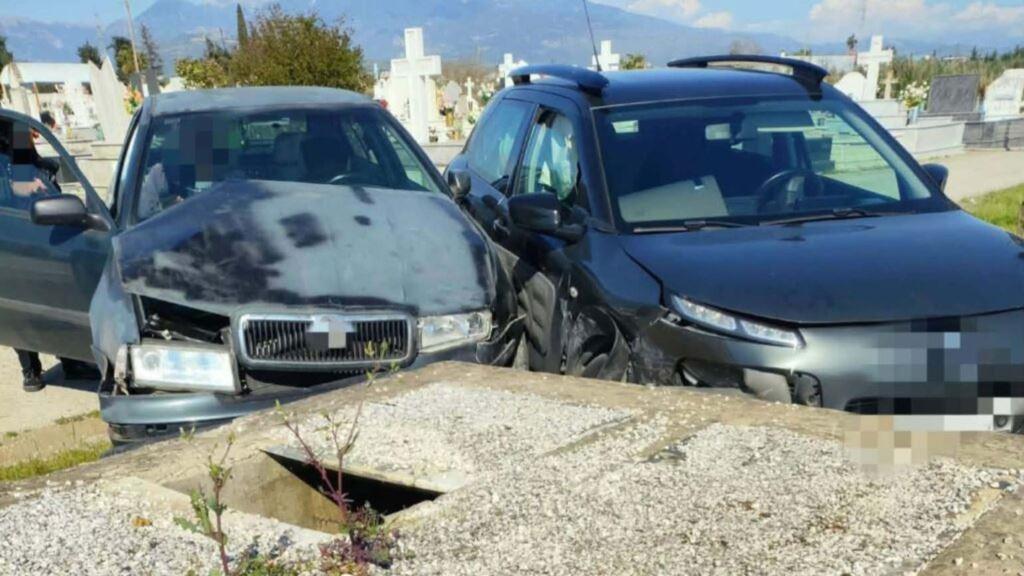 Σχεδόν σμπαράλια έγιναν τα μπροστινά μέρη δύο αυτοκινήτων στο Αγρίνιο, όχι όμως σε δρόμο ταχείας κυκλοφορίας, αλλά μέσα στο νεκροταφείο της πόλης.