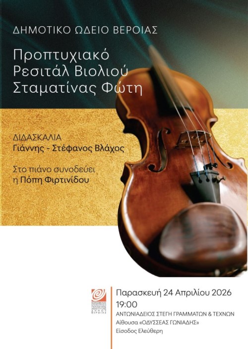 ΚΕΠΑ Δήμου Βέροιας: Προπτυχιακό ρεσιτάλ βιολιού Σταματίνας Φώτη στη Στέγη / Παρασκευή 24 Απριλίου