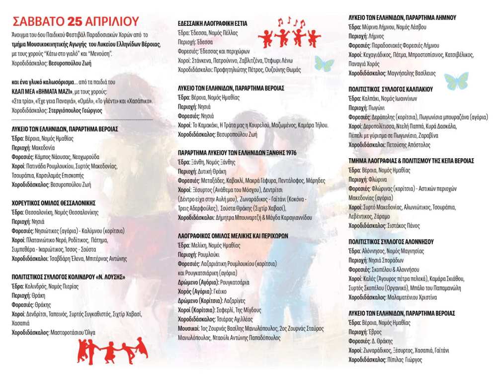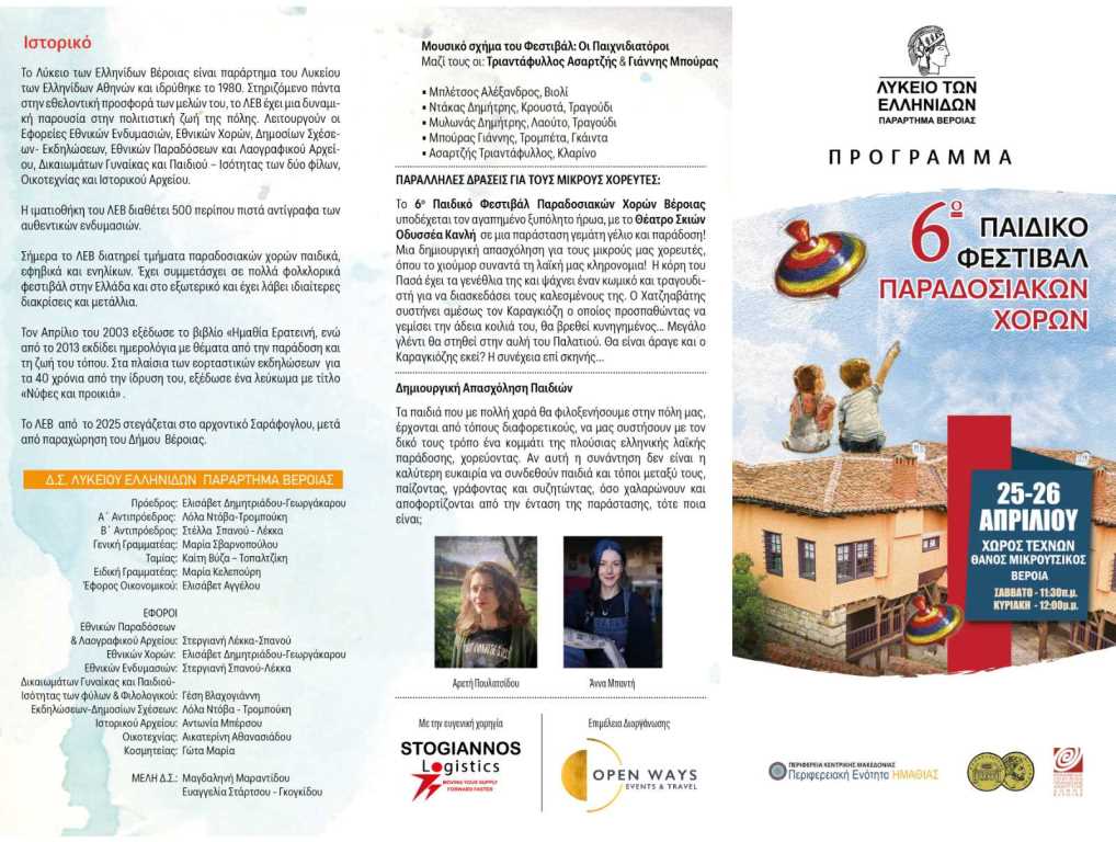 Ξεκινά αύριο, Σάββατο 25 Απριλίου, το 6ο Παιδικό Φεστιβάλ Παραδοσιακών Χορών του Λυκείου Ελληνίδων Βέροιας / το αναλυτικό πρόγραμμα