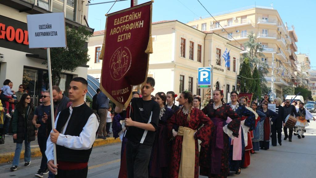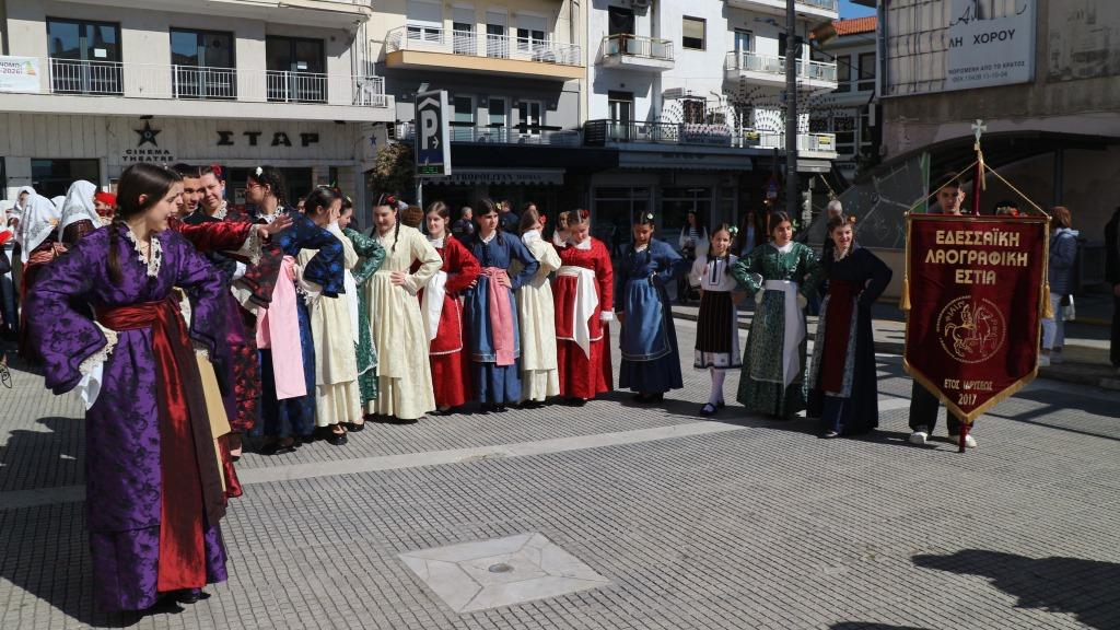 Και ξεκίνησαν τα παιδιά να γεμίζουν τη μεγάλη σκηνή με τα αθώα τους πρόσωπα με τη λαμπερή παρουσία της νιότης τους, παιδιά δικά μας από δω από το Λύκειο ή από την ΚΕΠΑ της πόλης, από τη Μελίκη και τα περίχωρά της, από τον Κολινδρό, από τη γειτονική Έδεσσα ή τη Θεσσαλονίκη, αλλά κι από μακριά πολύ, όπως από τα Ιωάννινα, την Ξάνθη, την Αλόννησο ή τη Λήμνο.
