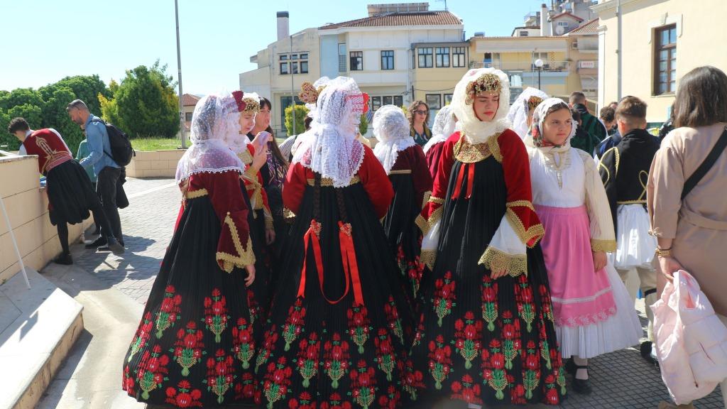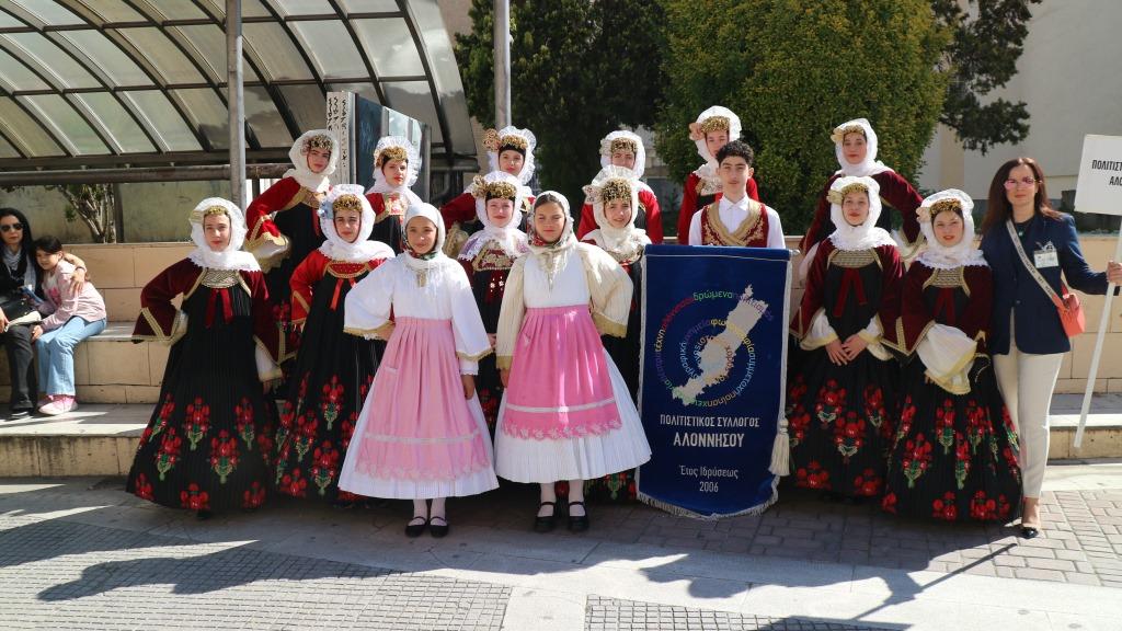 Με τα όργανα μπροστά και τα λάβαρα των συλλόγων που στείλανε τα παιδιά τους σ’ αυτήν τη συνάντηση να σηματοδοτούν μια τεράστια συμμετοχή , που συνολικά, Σάββατο και Κυριακή, αγγίζει τον αριθμό των 500 παιδιών, οι μικροί χορευτές φτάσανε στον Χώρο Τεχνών για να χορέψουν με τις πολύχρωμες φορεσιές τους και τον αέρα του κάθε τόπου.