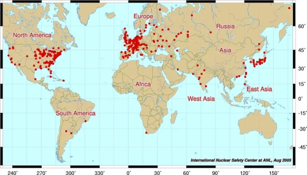 Χάρτης όλων των πυρηνικών εργοστασίων στον κόσμο.