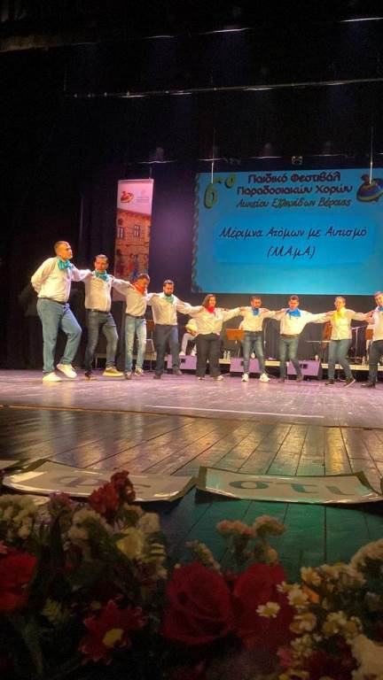 Η Μέριμνα Ατόμων με Αυτισμό και το Κέντρο Υποστήριξης για τον Αυτισμό Ν.Ημαθίας συμμετείχαν ενεργά, ανοίγοντας το φεστιβάλ με ένα γλυκό καλωσόρισμα. Οι χορευτές μας παρουσίασαν με περηφάνια τους χορούς «Γιγκνά» Δυτικής Θράκης και «Χασάπια – Έχε γεια Παναγιά», μεταφέροντας το μήνυμα ότι η παράδοση ανήκει σε όλους.