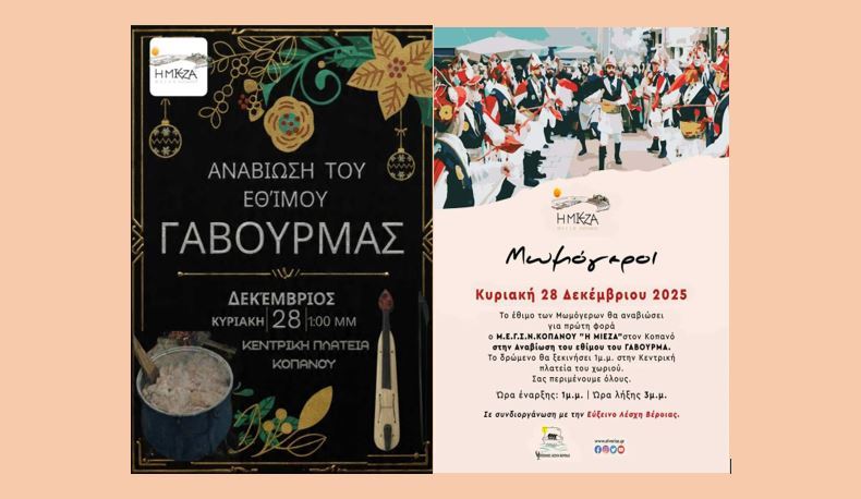 Κοπανός Ημαθίας: Πρόσκληση στην εκδήλωση αναβίωσης του εθίμου «Γαβουρμάς» / Κυριακή 28 Δεκεμβρίου