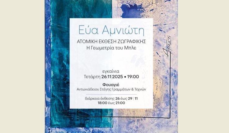 Έκθεση ζωγραφικής: Εύα Αμνιώτη “Η Γεωμετρία του Μπλε” / Φουαγιέ της Στέγης, 26-29 Νοεμβρίου