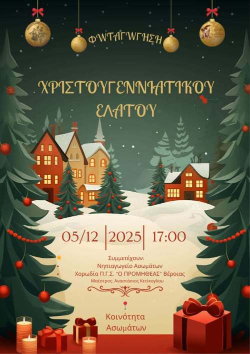 Η Χορωδία Π.Γ.Σ. “Ο Προμηθέας” Βέροιας στη Φωταγώγηση του Χριστουγεννιάτικου Έλατου Ασωμάτων 2025 / Παρασκευή 5 Δεκεμβρίου