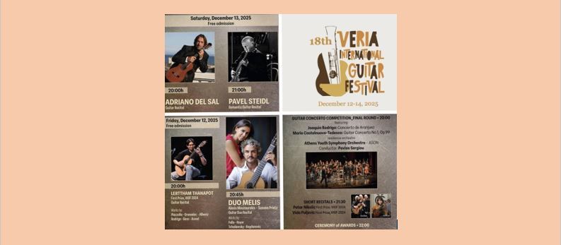 ΚΕΠΑ Δήμου Βέροιας: 18ο Διεθνές Φεστιβάλ Κιθάρας Βέροιας 12, 13 & 14 Δεκεμβρίου 2025