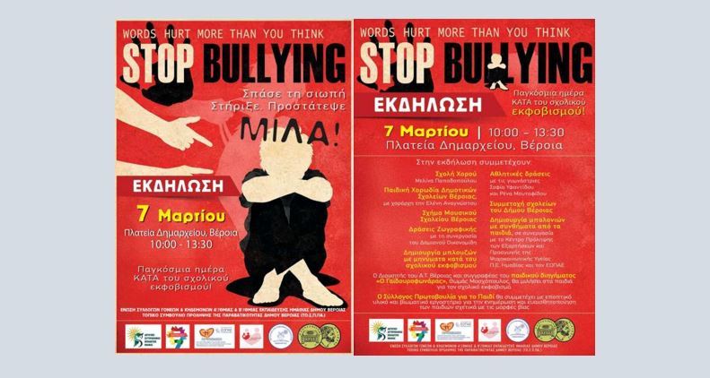 Βέροια: Stop bullying – εκδήλωση για τον σχολικό εκφοβισμό / Σάββατο 7 Μαρτίου