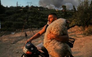 Αχαΐα: Νεαρός με μηχανάκι παίρνει στην αγκαλιά του πρόβατο και το σώζει από τη φωτιά