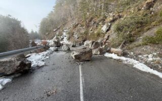 24/01/2026 Δήμος Δίου-Ολύμπου: Κλειστός ο δρόμος στον Όλυμπο προς Πριόνια (μετά την Γκορτσιά) λόγω κατολίσθησης βράχων